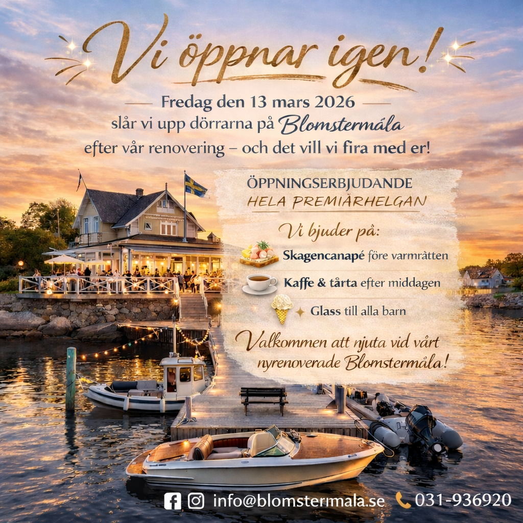 Boka bord: 031-936920/ info.blomstermala.se